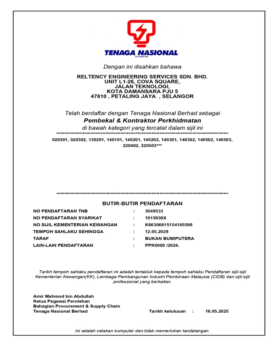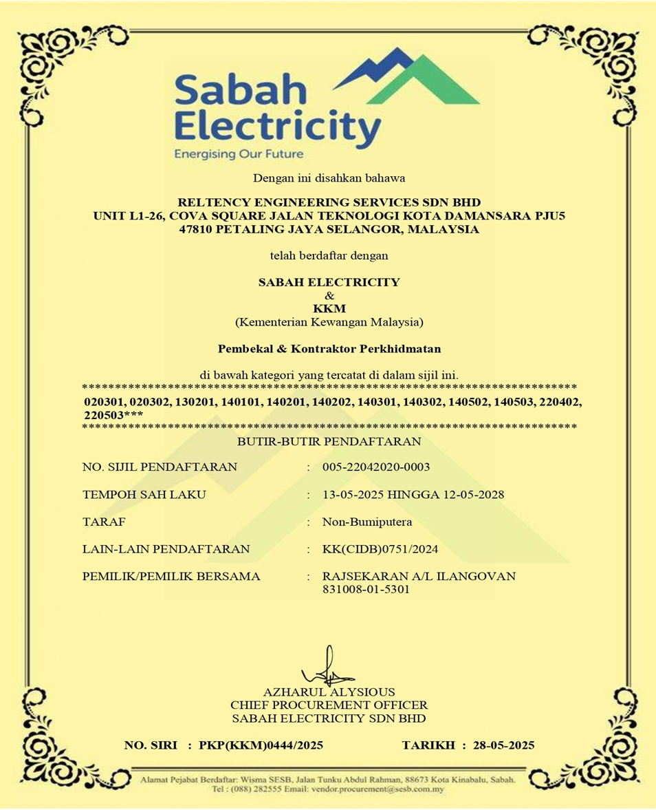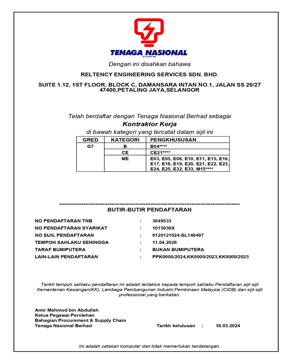 Incorporated in the year 2012, Reltency Engineering Services involves in project management, engineering, construction and commissioning of electrical power infrastructures.