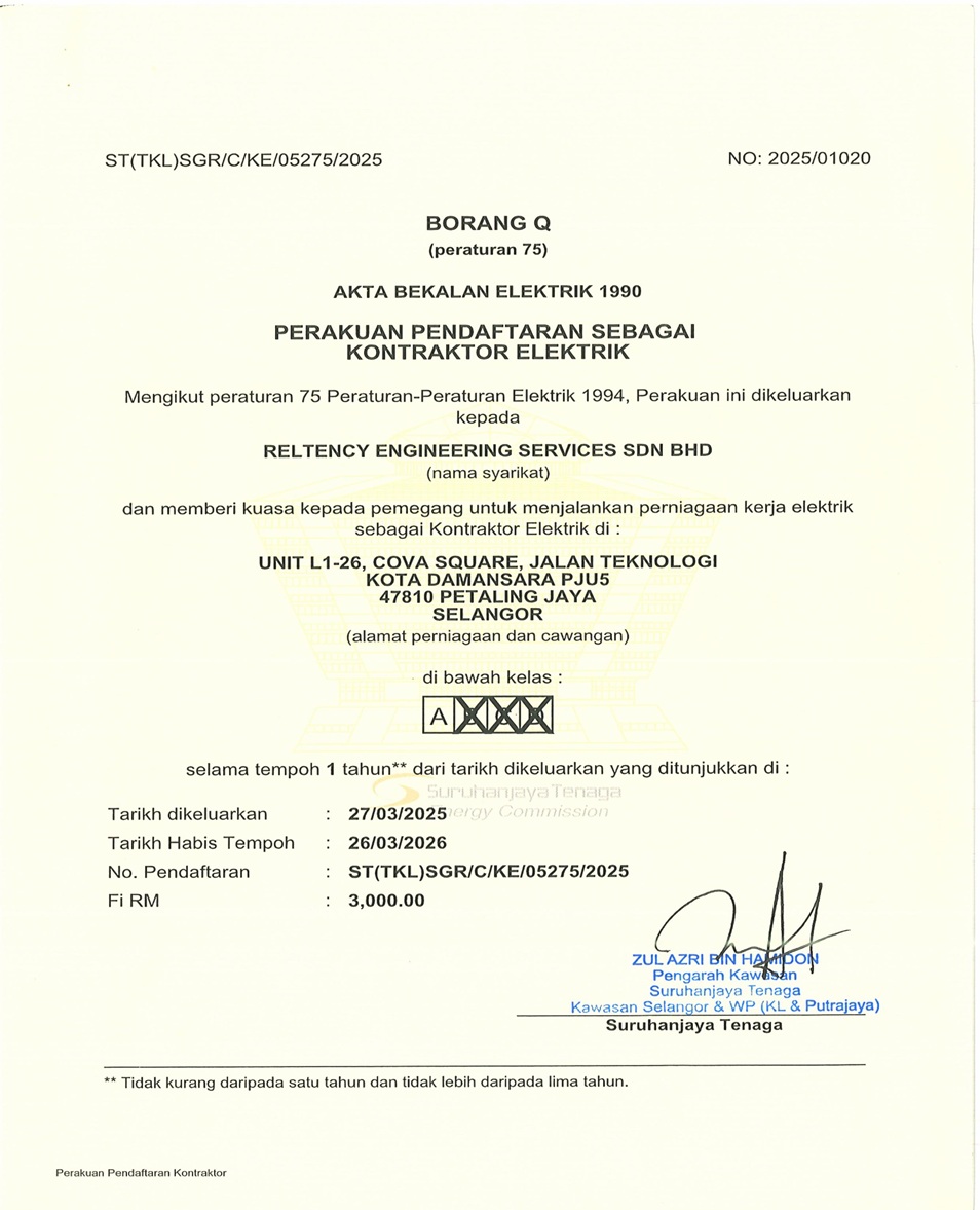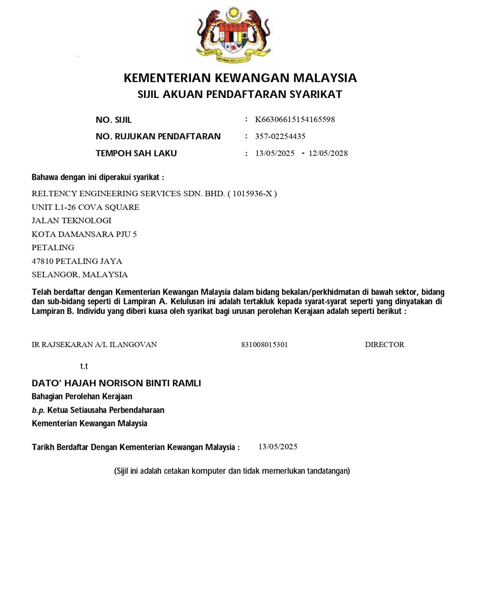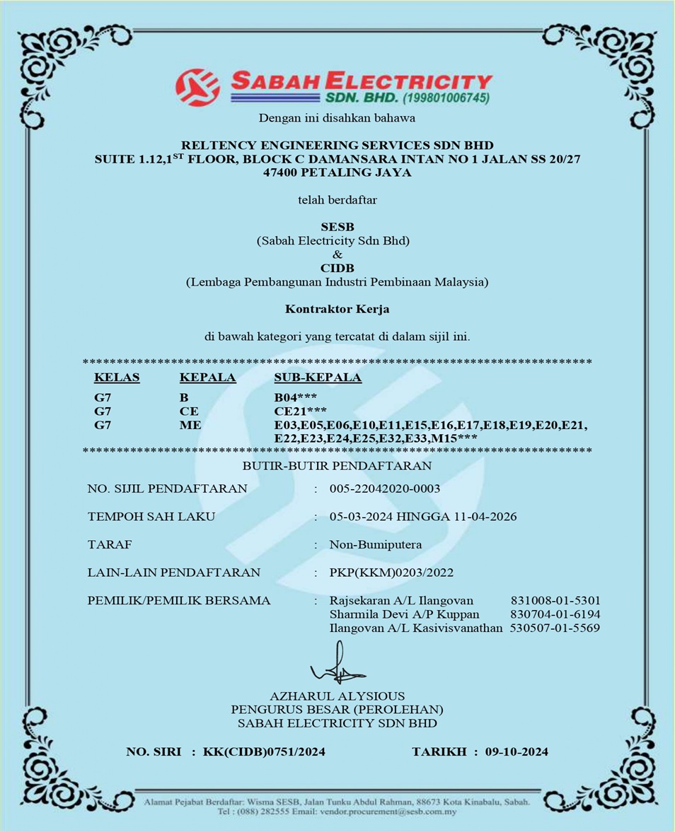 Incorporated in the year 2012, Reltency Engineering Services involves in project management, engineering, construction and commissioning of electrical power infrastructures.